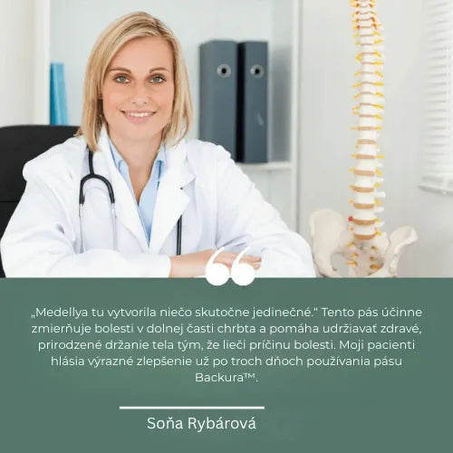 „Medellya vytvoril niečo naozaj výnimočné. Tento pás účinne uľavuje od bolesti v krížoch a pomáha udržiavať zdravé, prirodzené držanie tela riešením samotnej príčiny bolesti. Moji pacienti hlásili výrazné zlepšenie už po troch dňoch používania pásu Backura™.“