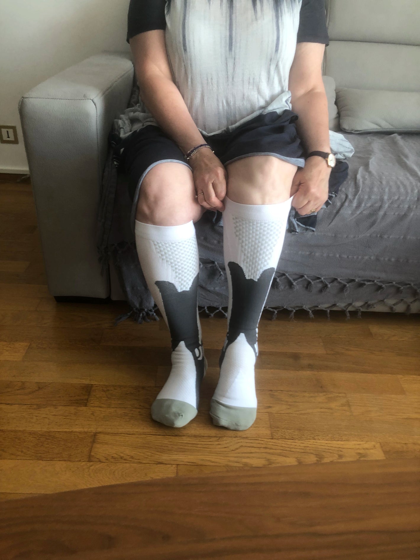Vyskúšala klasické podporné ponožky—nepohodlné, škaredé, ťažko sa obliekali.